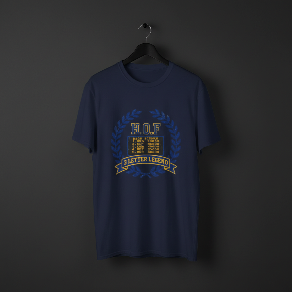 This design playfully honors the ultimate arcade achievement: the 3-letter Hall of Fame.